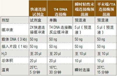 ? NEB 目前提供預(yù)混液形式的連接酶,請(qǐng)?jiān)? 2013﹒2014 商品目錄第 100 頁的連接酶選擇表格中選擇