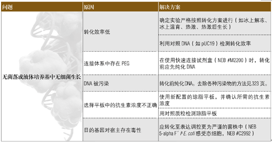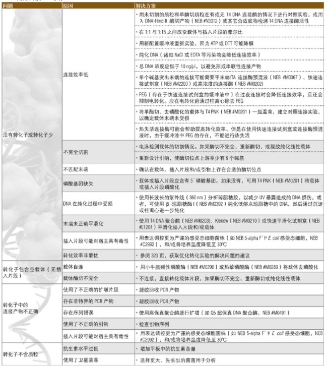 下面的指南可用于解決分子克隆實(shí)驗(yàn)中所出現(xiàn)的問題。關(guān)于優(yōu)化轉(zhuǎn)化實(shí)驗(yàn)的其它建議參閱 2013﹒2014 商品目錄 323 頁。