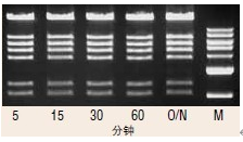 1 μl SalI 5 分鐘內(nèi)消化 1 μg DNA,結(jié)果顯示長(zhǎng)時(shí)間酶切或過夜 (O/N) 消化沒有核酸酶污染。