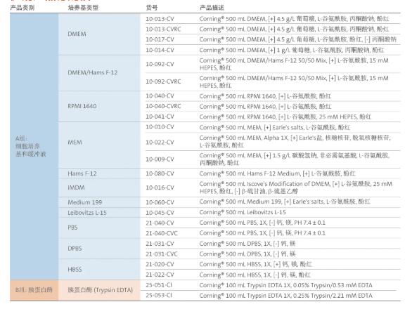 康寧生命科學(xué)為客戶提供一系列值得信賴的高品質(zhì)細胞培養(yǎng)試劑,包括細胞培養(yǎng)基和各種細胞培養(yǎng)添加劑,為處于各生長階段的細胞提供了適宜的生長環(huán)境。連同康寧多種類型的細胞培養(yǎng)表面的耗材產(chǎn)品一起,為廣大科研用戶提供了廣泛的實驗支持。